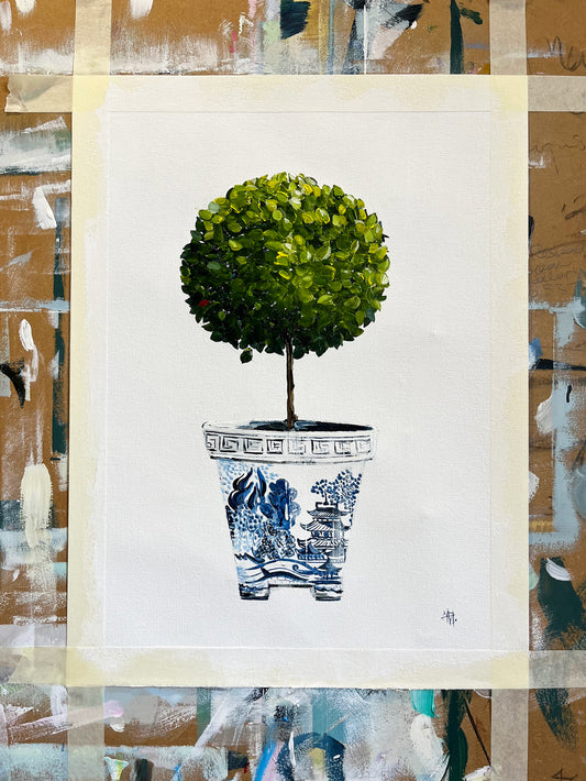Painting of a Stack of Glass, Ceramic & Terracotta Painted in Acrylic on Cotton Canvas